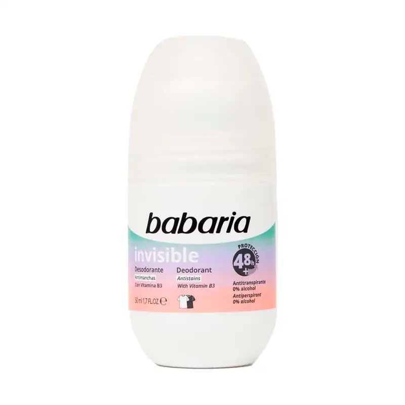 مام رولی ضد تعریق 48 ساعته باباریا مدل INVISIBLE با حجم 50 میلی‌لیتر یکی از محصولات مراقبت از بدن برند باباریا (Babaria) است که برای کنترل تعریق و جلوگیری از بوی نامطبوع بدن طراحی شده است. این محصول با فرمولاسیون وگان و بدون ایجاد لک روی لباس، برای پوست‌های حساس و استفاده روزمره مناسب است. برند باباریا، تولید اسپانیا و فعال از سال 1981، به دلیل محصولات باکیفیت و سازگار با محیط زیست در بیش از 80 کشور شناخته شده است.