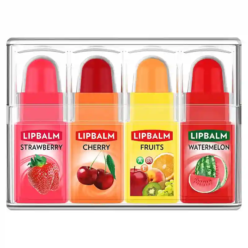 - شامل ۴ بالم لب مینی با رایحههای میوهای (توت فرنگی، گیلاس، استوایی، هندوانه)