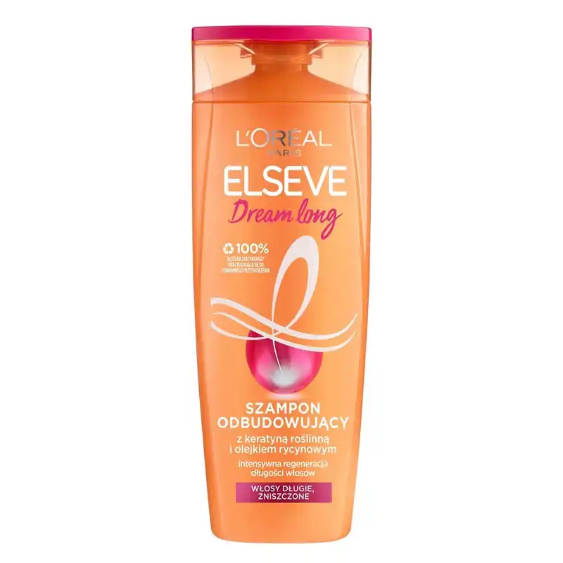 شامپو السیو مو لورال نارنجی مدل ELSEVE DREAM LONG با فرمول ویژه خود موهای بلند را بازسازی کرده و از شکستگی و دو شاخه شدن انتهای مو جلوگیری می‌کند. ترکیبات مغذی مثل کراتین و روغن کرچک به صافی درخشندگی و استحکام موها کمک کرده و اثرات مخرب نور خورشید ابزارهای حرارتی و آلودگی را کاهش می‌دهد.
