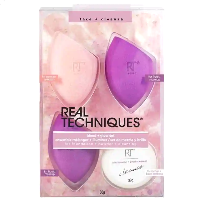 ست اسفنج ریل تکنیک مدل BLEND & GLOW SET، محصولی از برند Real Techniques (تولید چین تحت لیسانس انگلستان)، مجموعهای حرفهای و کاربردی است که شامل 3 اسفنج آرایشی (بیوتی بلندر) و یک صابون پاککننده اختصاصی است. این اسفنجها با فوم بدون لاتکس، وگان و فاقد تست حیوانی، برای پخش کرم پودر، کانسیلر و کانتور طراحی شدهاند و آرایشی یکدست و طبیعی ایجاد میکنند. ریل تکنیک از سال 2011 با طراحی سامانتا و نیکول چپمان، میکاپ آرتیستهای معروف، در تولید ابزار آرایشی شهرت دارد.