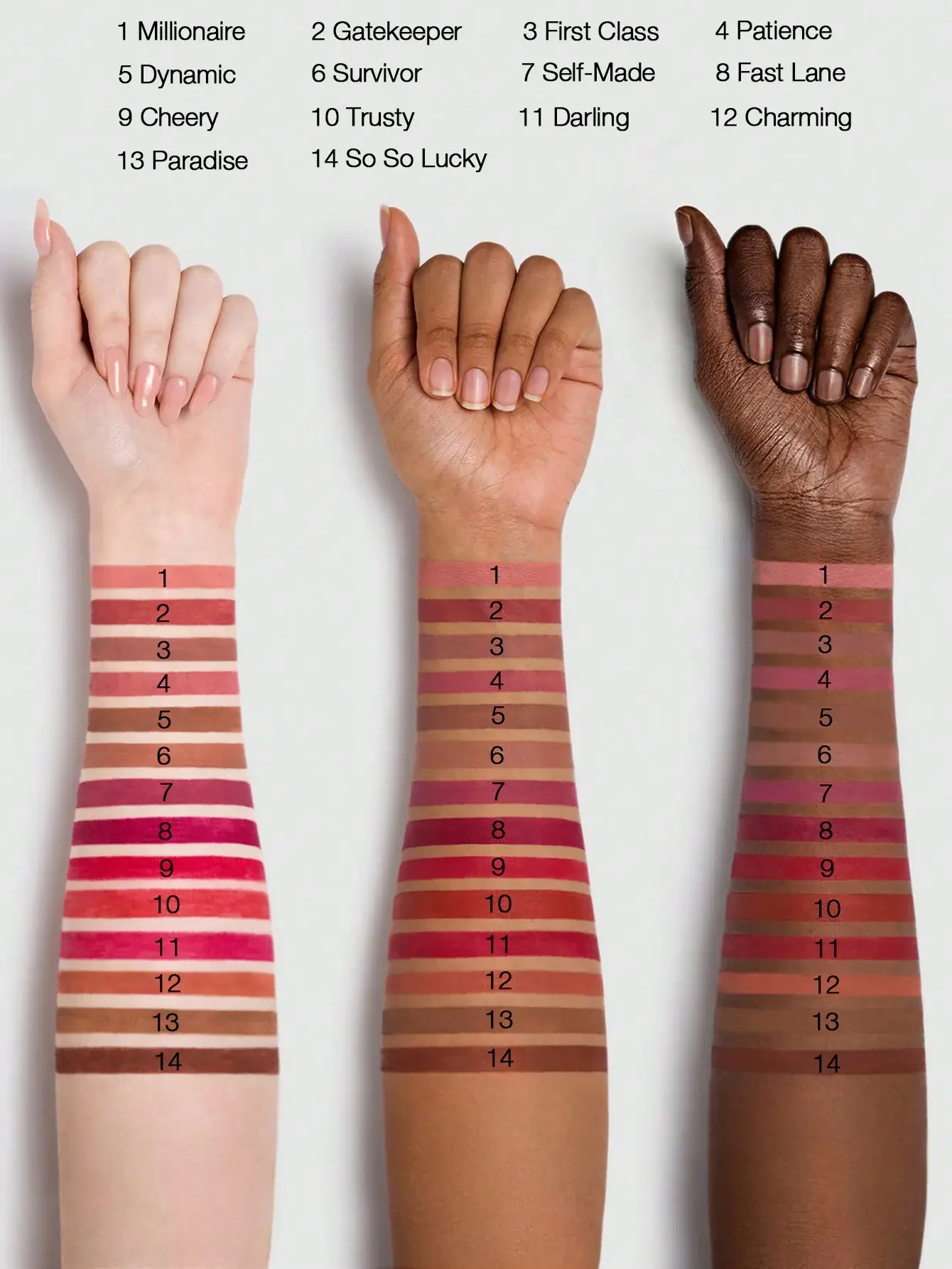 رنگبندی: MILLIONAIRE، GATE KEEPER ، FIRST CLASS، PATIENCE، DYNAMIC، SURVIVOR ، SELF-MADE ، FAST LANE ، CHEERY ، TRUSTY ، DARLING ، CHARMING ، PARADISE ، SO SO LUCKY