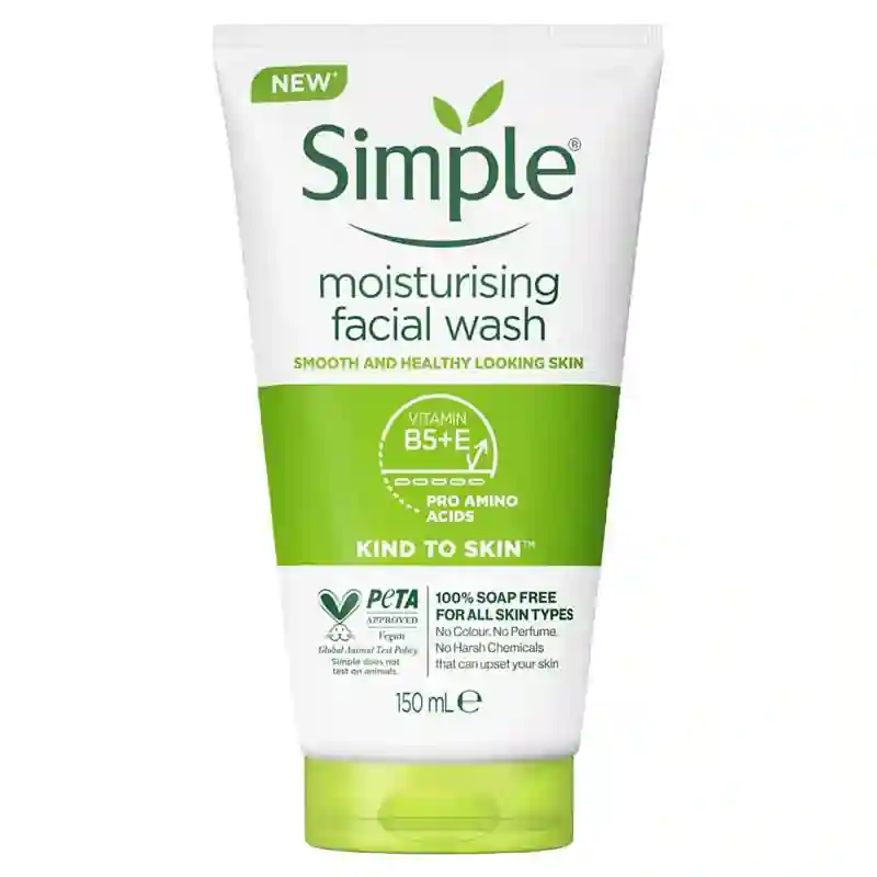 شوینده صورت MOISTURISING سیمپل (Simple Kind to Skin Moisturising Facial Wash) با حجم 150 میلی لیتر، محصولی از برند Simple (تولید انگلستان یا لهستان تحت لیسانس انگلستان)، یک ژل شستشوی ملایم و آبرسان است که با فرمولاسیون حاوی پروویتامین B5، ویتامین E و بیزابولول، پوست را از آلودگی، چربی و آرایش پاک کرده، رطوبت‌رسانی عمیق ارائه می‌دهد و از خشکی و کشیدگی پوست جلوگیری می‌کند. این شوینده فاقد مواد شیمیایی مضر، صابون، الکل، عطر و پارابن، مناسب انواع پوست به‌ویژه پوست‌های خشک و حساس، غیرکومدون‌زا و کاملاً وگان است. برند سیمپل از سال 1960 با محصولات ملایم و دوستدار پوست و محیط زیست، در جهان شهرت دارد.