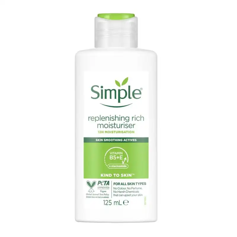 کرم آبرسان و مرطوب کننده سیمپل مدل RICH با حجم 125 میلیلیتر محصولی سبک و مغذی برای پوستهای نرمال، خشک و حساس است. این کرم با فرمولاسیون فاقد الکل، پارابن و عطر حاوی پروویتامین B5، ویتامین E، گلیسیرین و بیزابولول بوده و به آبرسانی عمیق و تسکین پوست کمک میکند. سیمپل، برند انگلیسی معتبر که بهدلیل محصولات مراقبت از پوست با ترکیبات ملایم و وگان شناخته شده، این کرم را برای رفع خشکی، جلوگیری از چین و چروک و ایجاد شادابی طراحی کرده است.